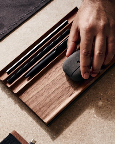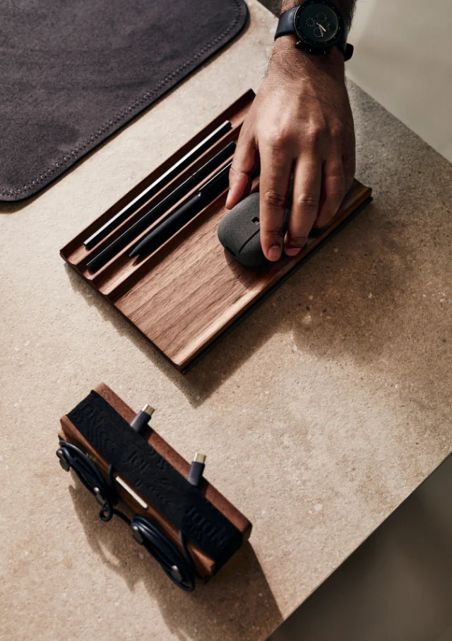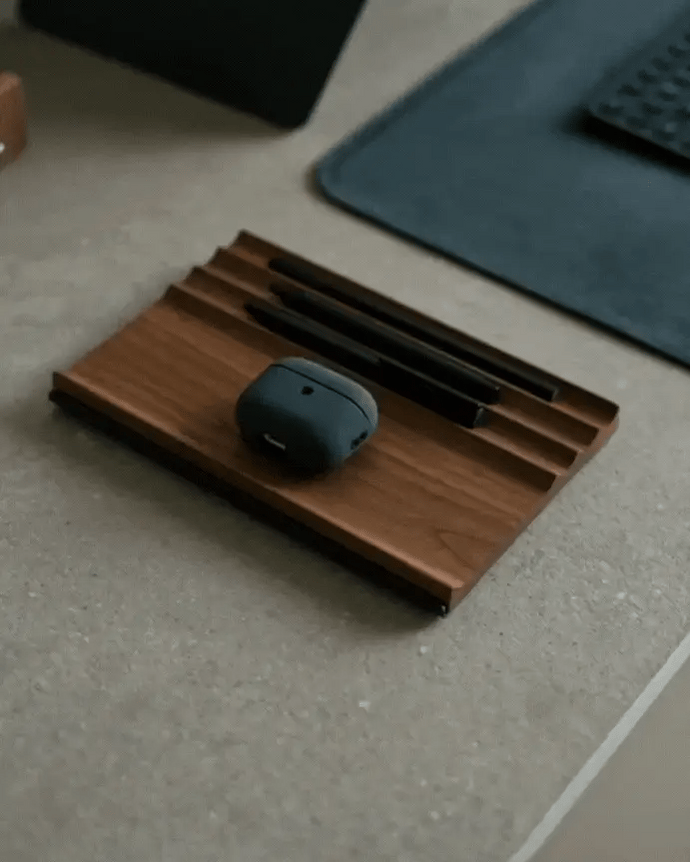 A slated wooden desk organiser with Scandinavian-inspired clean lines makes this compact desk organiser a must-have for your desk. It comes with thoughtful (and beautiful) wave dividers for everyday tools like watches, pens, apple pencils and small stationery.