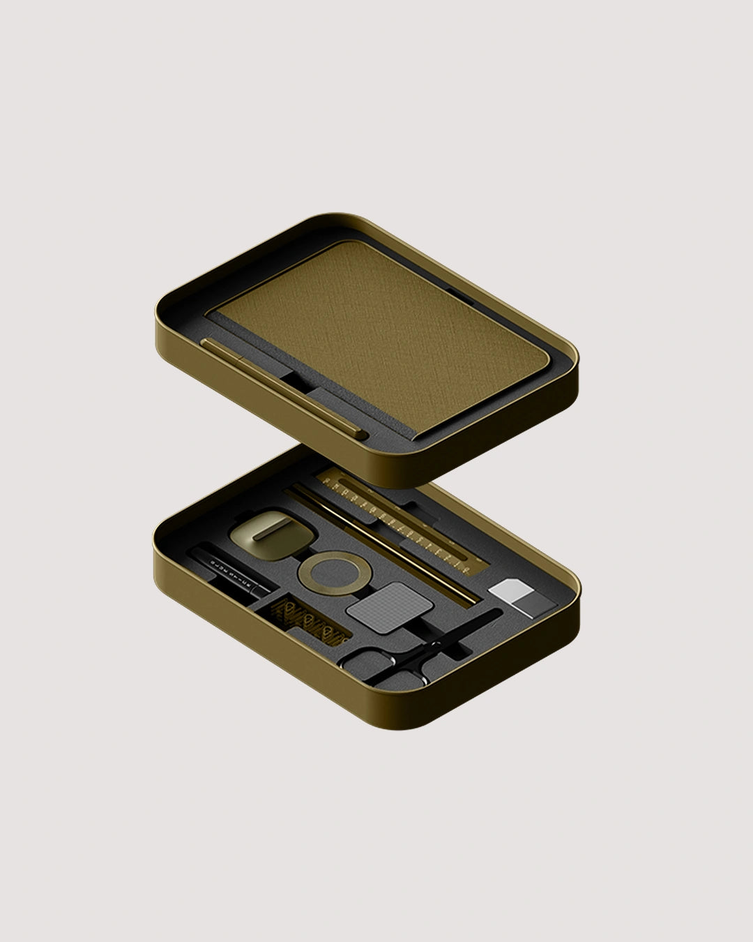 The Bento Jot is crafted with high-quality materials, including a solid tin outer shell, recycled cross-grain leather for the Attaché Organiser, and premium paper stocks for the stationery. These materials are carefully selected for their durability and refined feel.