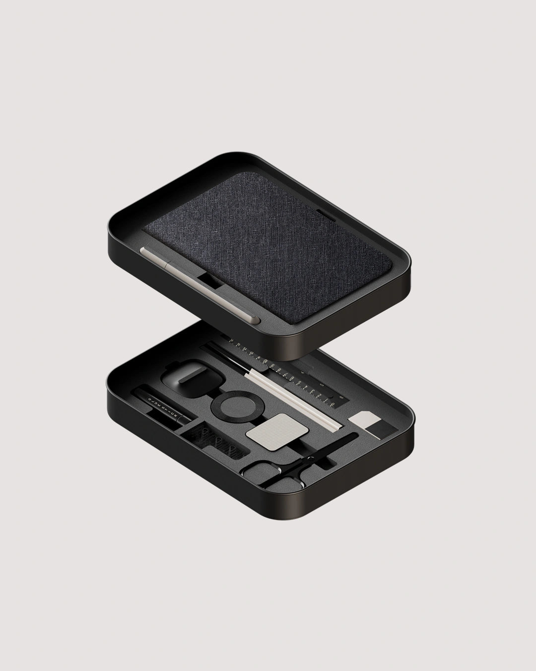 Almost everything you need for your creative workflow. We have designed 11 stationary objects, all packed in custom stacking trays; with each product in its placeholder.