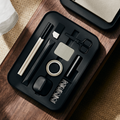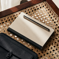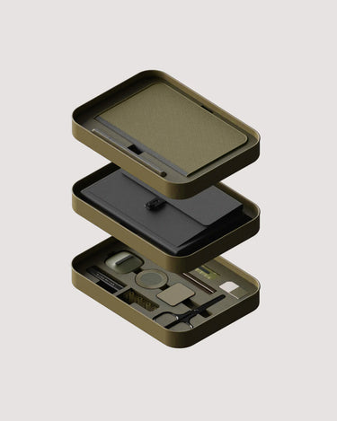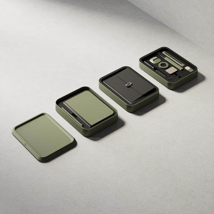 The Bento Jot is crafted with high-quality materials, including a solid tin outer shell, recycled cross-grain leather for the Attaché Organiser, and premium paper stocks for the stationery. These materials are carefully selected for their durability and refined feel.