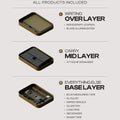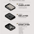 The layers feature a push-down lid mechanism that ensures a secure closure, keeping everything neatly organized and preventing items from shifting.