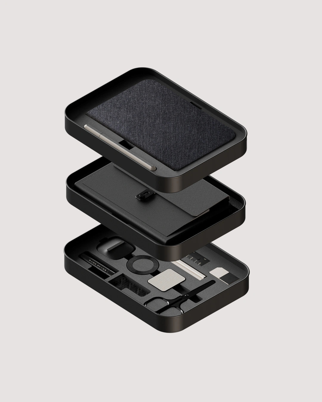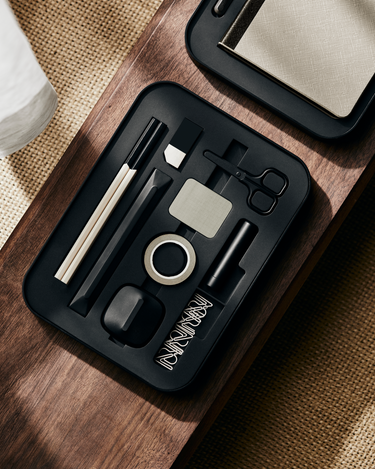 Almost everything you need for your creative workflow. We have designed 12 stationary objects, all packed in custom stacking trays; with each product in its placeholder.