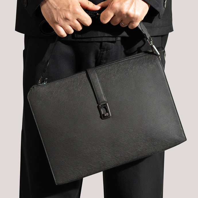 The Hybrid Laptop Bag is available in two elegant colours: Carbon Black and Clay.