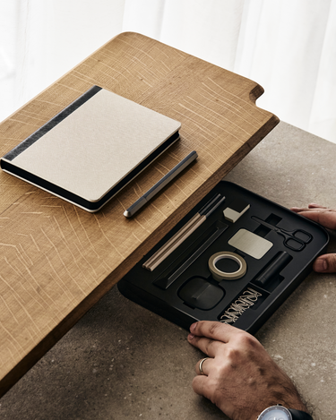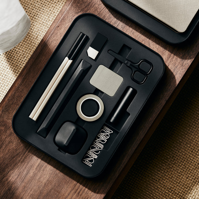 Almost everything you need for your creative workflow. We have designed 11 stationary objects, all packed in custom stacking trays; with each product in its placeholder.