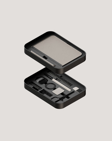 The Bento Jot is crafted with high-quality materials, including a solid tin outer shell, recycled cross-grain leather for the Attaché Organiser, and premium paper stocks for the stationery. These materials are carefully selected for their durability and refined feel.