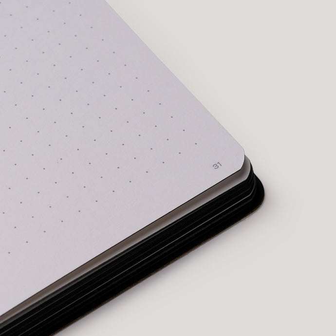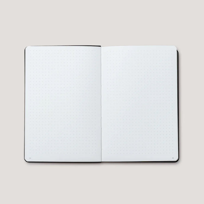 The dot grid layout with an edge recess offers a versatile canvas for writing, drawing, or bullet journaling. It provides subtle guidance for structure while maintaining flexibility, and the recessed edges add a modern, refined touch.